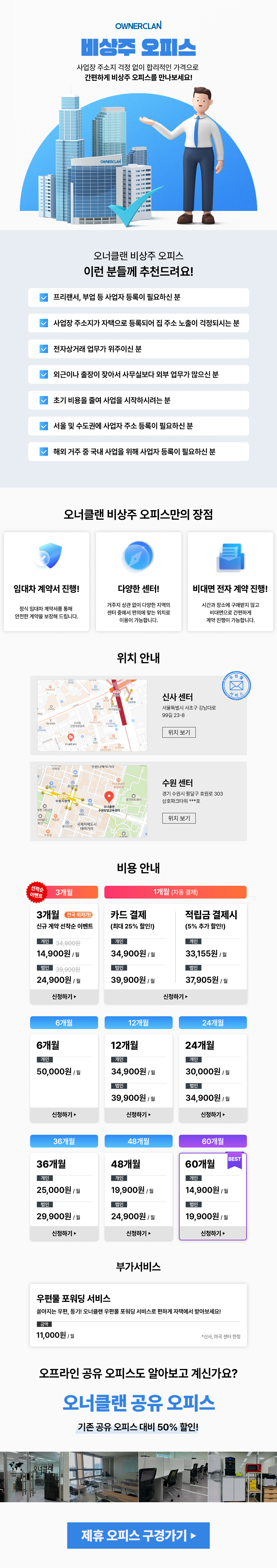 A: 네, 오너클랜의 비상주 오피스는 다양한 지점을 제공하여, 거주 지역과 상관없이 비즈니스에 유리한 주소를 선택할 수 있습니다.