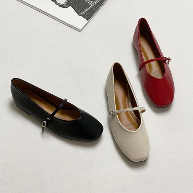 각코 브이라인 스트랩 메리제인 플랫 여성 단화Y