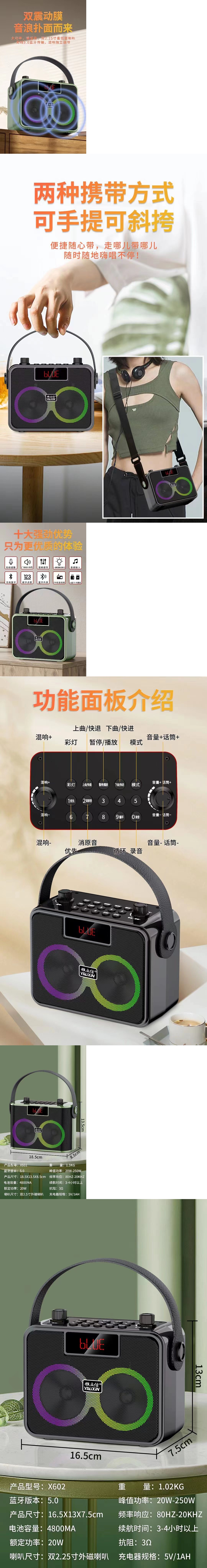 무선 블루투스 스피커 휴대용 야외용 X601 Yalixin
