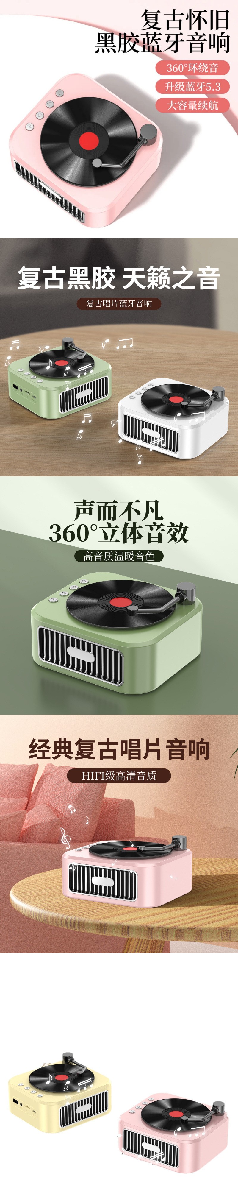 무선 블루투스 스피커 휴대용 RGB 비닐 레코드 축음기