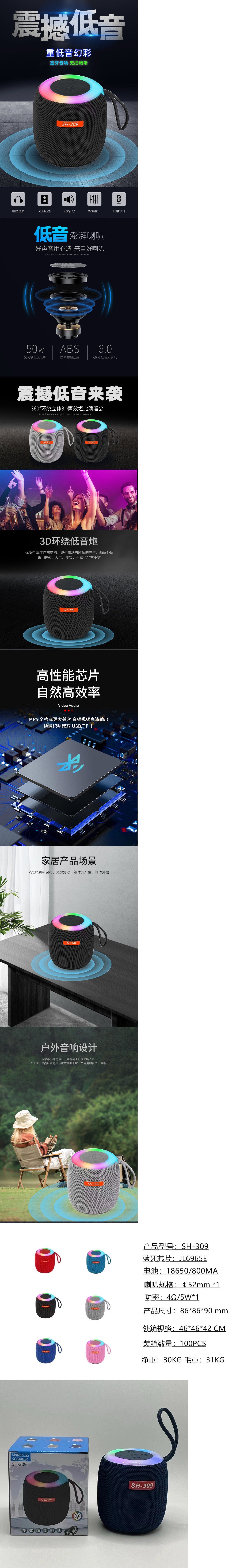 무선 블루투스 스피커 미니 야외용 RGB 빨간색 회색